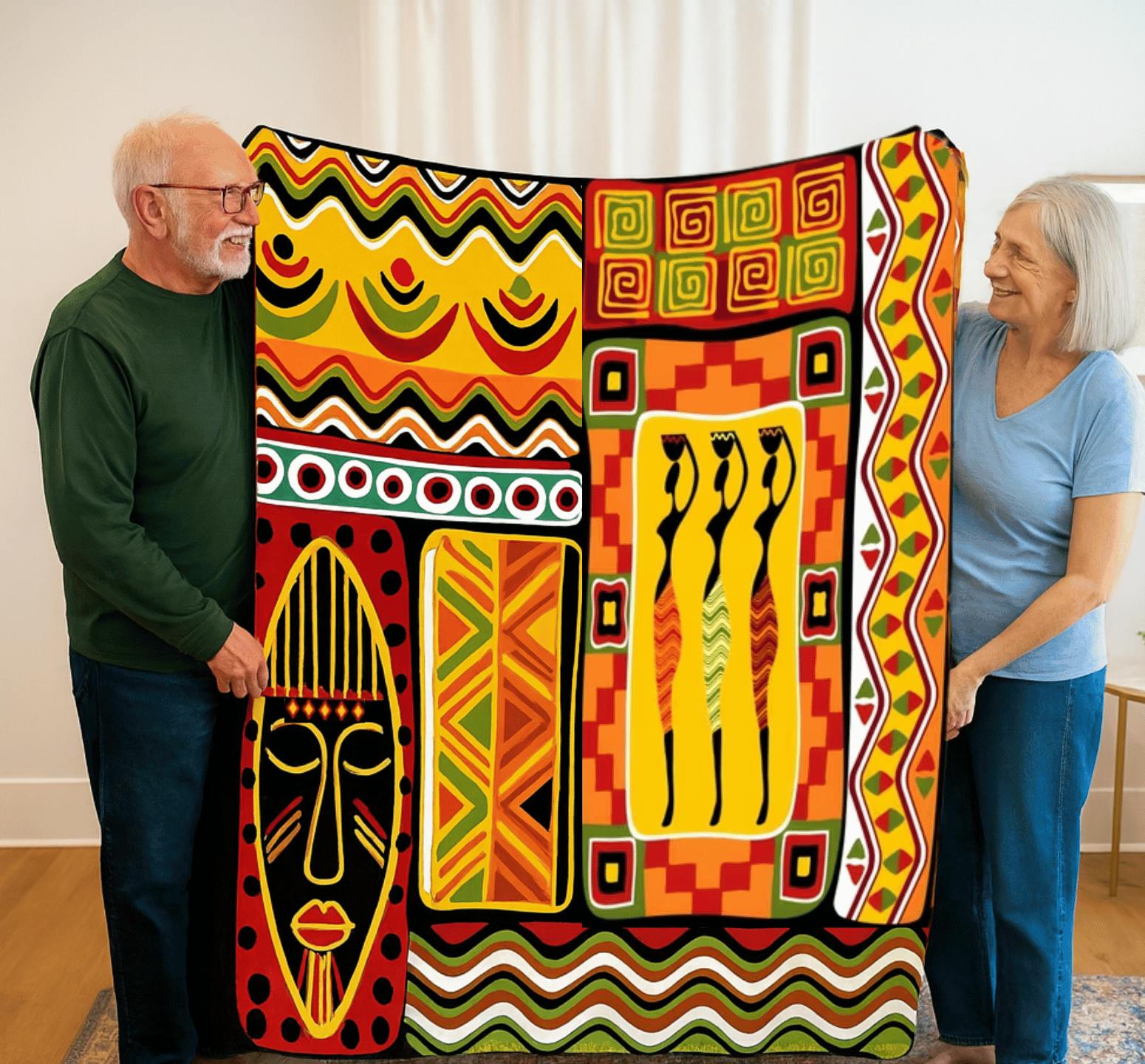This blanket stands out with its unique and vibrant African art pattern, making it a perfect decor addition for:
